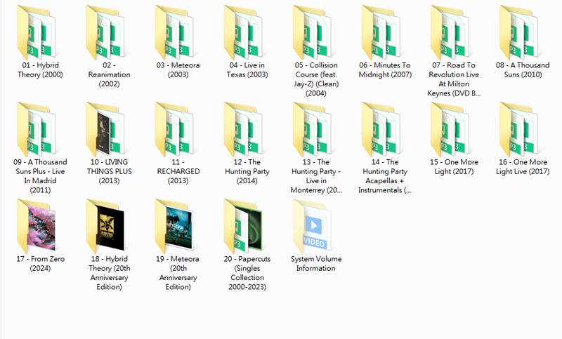 16GUSB 隨身碟,無須驅動,即插即用,支援車用,電視,電腦,高音質,攜帶方便,包含聯合公園 / 林肯公園 Linkin Park 錄音室唱片,精選集和現場專輯共20張唱片。
